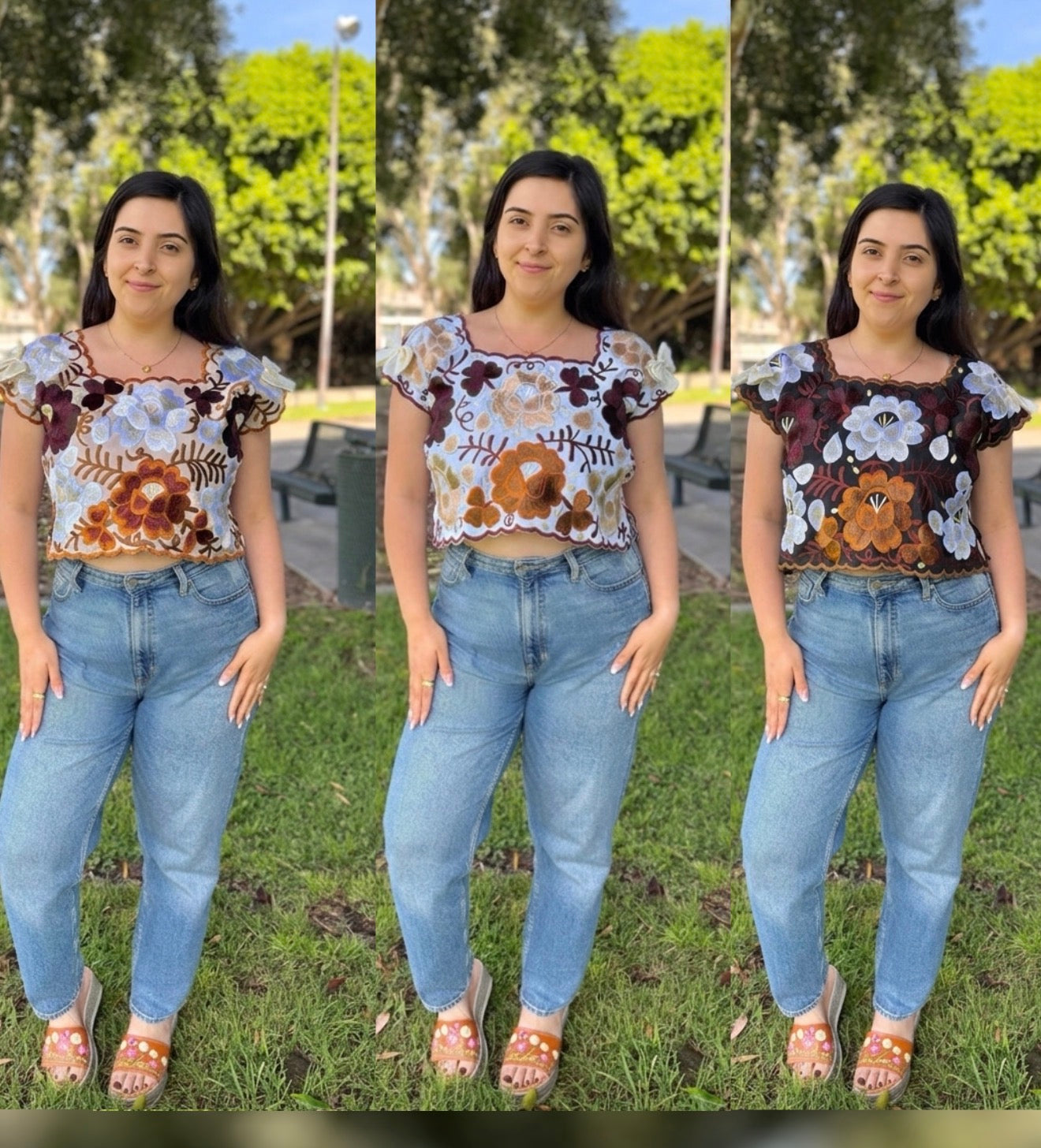 • Intricate Harvest Embroidery: Hand-stitched oversized florals in rich, warm tones that celebrate traditional Mexican artistry.